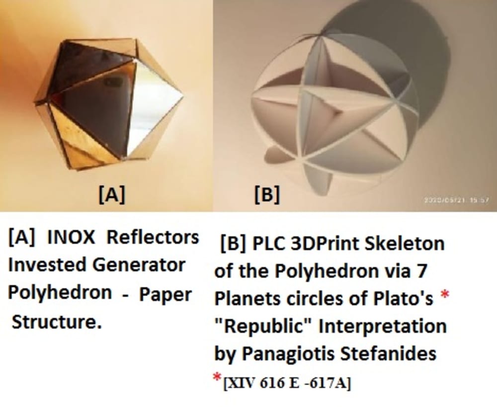 Generator Polyhedron Skeleton Proposal[ by Panagiotis Stefanides] of Structure involving the 7 circles of Plato’s Planets [Plato’s Republic XIV 616 E -617A].