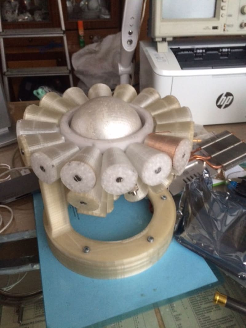 Modules that allow you to use the unusual gyroscope in various numerous applications can be introduced into the design, for example: (https://contest.techbriefs.com/2019/entries/aerospace-and-defense/9514-0506-035958-unusual gyroscope). To combat viruses with resonant frequencies, a new module has been introduced into the structure - a rotor made of a crystal with a constant equal to the diameter of the virus shell (for example, COVID-19 ~ 100 nm). The technical solution is based on a new breakthrough direction in physics, the object of which is the "emergence", which manifests itself not only in statics but also in dynamics. As an example of the emergence, we can cite the chemical combination of two elements of hydrogen and oxygen, that is, the formula of water, which as a complex and integral whole has fundamentally new properties than its constituent elements. The emergence appears when forced oscillations of the rotor mass elements occur around three axes per cycle, as a result, the emergence of the fourth axis of rotation arises, and the oscillations acquire the coherence property. Coherent oscillations of the rotor leading to the dynamic ordering of the system — to the masses of elements statically ordered in the crystal. At the moment of controlled directed short-term decoherence (artificial destruction of the dynamic ordering of the system at the moment of changing two of the three rotor rotation axes), a long-range and rapidly changing entropy force with a resonant frequency is created. Theoretically and in experiments, the entropic force exhibits a long-range interaction and is able to act on the envelopes of the virus inside the body and on nearby surfaces. The angular rotor speed of 6000 cycles/min affects only the amplitude of the microwave oscillations, while the constant of the rotor crystal determines a stable resonant frequency. Mechanical interaction decreases with the square of the distance from the center of the rotor to the object. The cells of the body are much larger and do not participate in resonance. The target is the viral envelope, proportional to the crystal constant. The treatment procedure for any viruses will resemble a physiotherapy session without any discomfort. Using a new type of mechanical gyroscope to destroy the envelopes of viruses inside the body, on surrounding objects and surfaces can radically solve the pressing problem.