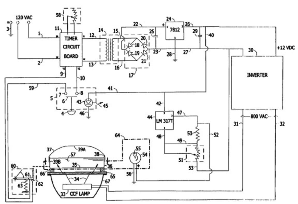 Described in detail in our Utility Patents (7,798,159 & 8,002,897), our submittal is the process commonly called UV-Peroxidation (element #2 below). As necessitated in Utility Patents a physical embodiment was required as an invention inclusion; we cited a device to sterilize dental prosthetics. Our patented technology consisted two elements, namely 1) a device, and 2) a low concentration (1% - 5%) H2O2 solution that is irradiated by UV light (~100 nM to ~450 nM). Quoting our ‘159 Patent (Column 3, line 57 et. seq.), “H2O2 irradiated by UV light results in the near-complete absorption of the UV light, leading to molecular photolysis of H2O2 into constituent hydroxyl (OH¯) radicals. The chemical interaction of these free, and extremely aggressive, hydroxyl radicals with bacteria and viruses causes the destruction of these pathogens by altering, among other things, their DNA (RNA) structures. Once chemically altered by the OH¯ radicals, these pathogens either die immediately or quickly mutate such that they cannot replicate, in effect dying shortly afterwards. Thus, although H2O2 is an effective biocide by itself, and UV light irradiation is effective in killing bacteria and viruses by itself, the combination of H2O2 irradiated by UV light can produce a far greater biocidal effect due to photolysis and the creation of sterilizing hydroxyl free radicals…”