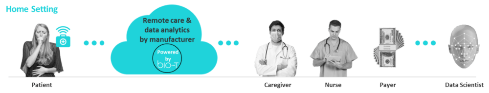 bio T™ is providing a cloud software for regulated medical device companies enabling them to upgrade any standalone device to a remote care solution in a snap! With features like adherence prediction, efficacy metering, and reimbursement management the patent-pending bio-T Engine™ is a one stop shop for manufactures, supporting all the dataway: from device connectivity, security and privacy, to patient interaction and behavior analysis.