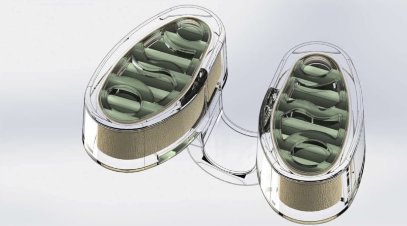 The filter element will be made from a flexible multi-layer nano-fiber material ‘Spunbond/Meltblown/Spunbond’. It will be fitted in a corrugated shape inside a chamber. The corrugated shape will increase the surface area to increase the air flow to avoid the feeling of user discomfort from the lack of oxygen and fatigue due to the extra pressure drop through the filter.