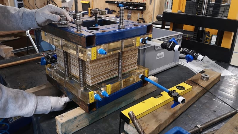 The BlueBattery is frankly quite simple to manufacture. A stack of ion-exchange membranes needs to be made to perform ED and RED. Thus consume power to desalinate water or use concentrated salty water and freshwater stream to generate energy. Other than that, one needs tanks to store brackish water (somewhat salty water), brine (very salty water) and freshwater. Thus it is easy to implement. A large-scale demonstration pilot of this technology has been built on the Green Village located the campus of technical university of Delft in the Netherlands. It stores solar energy during the day, and during the night it provides power to 6 student houses. By scaling up production of the ion-exchange membranes, the cost can be lowered several orders of magnitude.