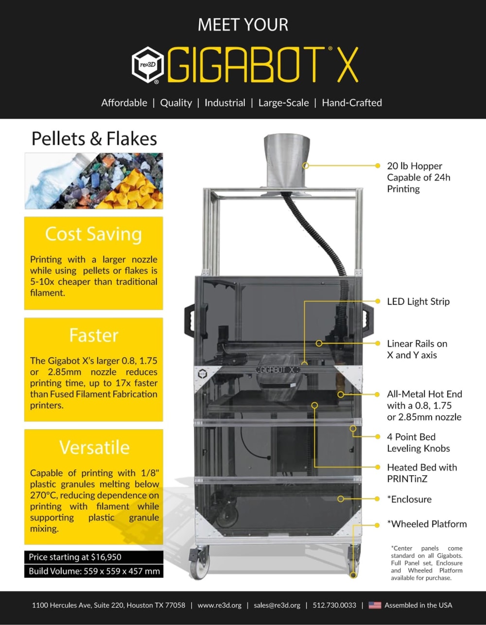 Gigabot X: Recycling Plastic via Pellet 3D Printing