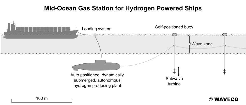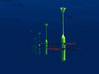 The Subwave turbines operate below the active wave zone, safely away from the harsh surface environment, with its storms and marine growth. The turbines hang in cables from sturdy buoys on the surface. Wave energy is relayed to them via these cables.