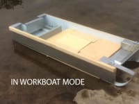 The skimming function requires the boat to incorporate a mid-ship moon pool to accommodate a removable gravimetric oil/water separation tower. In workboat mode this pool is sealed closed. The pool has multiple other uses – for fishing, underwater search, research or diving.