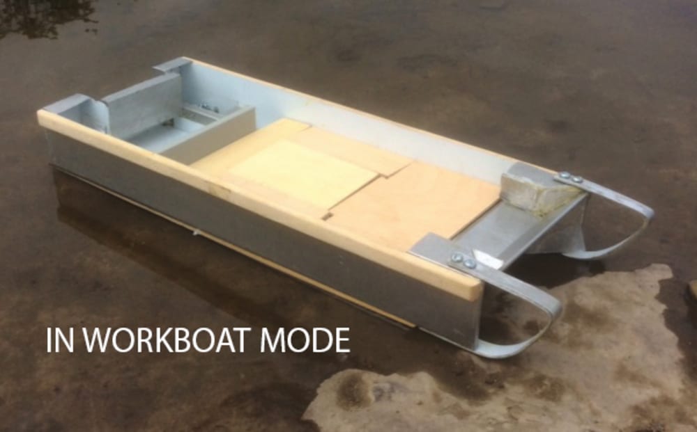 In its basic form and with a ramp it can serve as a general-purpose, beachable workboat. It becomes a clean-up vessel for oil, plastic or algae by adding special equipment, making it comparable to a basic vacuum cleaner with multiple, quickly changeable attachments.