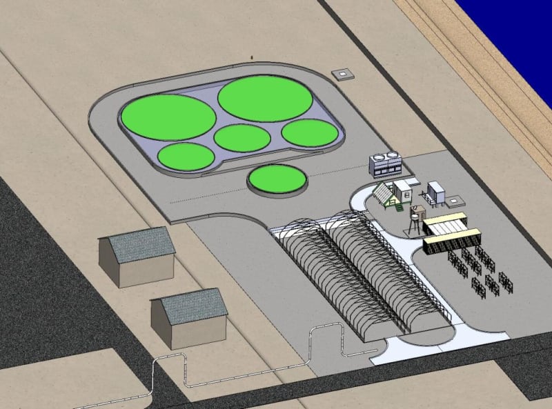 The HDB is designed to be a 10^2 meter disk that floats on water, containing a pool of microalgae suspended on reflective HDPE liner. Infrared blocking greenhouse liner encloses the top of the disk to prevent contamination. Carbon dioxide emissions from industrial processes is flowed in through plumbing in the bottom HDPE liner, helping to mix the culture and pressurize the disk. Oxygen and carbon dioxide sensors control pressure relief valves, and a miniPhoto-Analytic-Meter(MiniPAM) records and transmits the total health and density of the algae to a nearby monitoring station. Each HDB has been proven capable of generating 187,000 liters of biomass at 340 grams/liter dried, and one monitoring station can control the product from 24 HDBs. Temperature and mixing of the algae is passively controlled by the body of water the HDB is placed in.