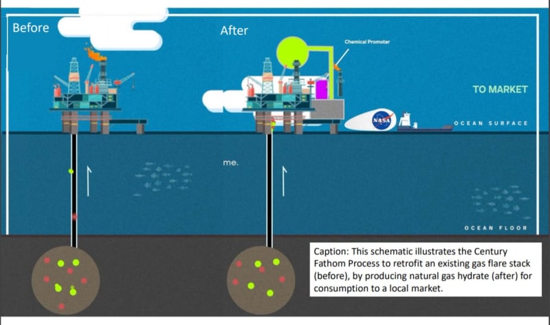 Century Fathom presents a novel method using Natural Gas Clathrate Hydrates (NGH) for producing natural gas from sub-sea petroleum reserves. Our patented process enables production of reserves which are deemed stranded either because they contain a high content (percentage) of impurities, specifically carbon dioxide and/or sulfur, or because production capacity (quantity) is too small to implement conventional methods, particularly Liquified Natural Gas (LNG). The Century Fathom method is less than half the cost of these existing methods.