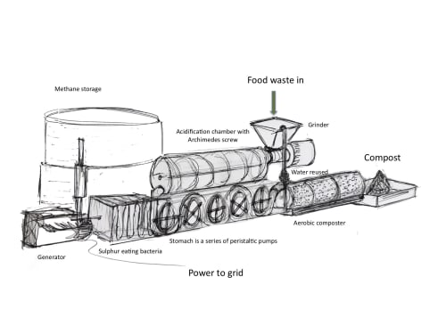 Food waste is a noxious material if dumped on landfill. The key to the system is the biomimicry of the digester,