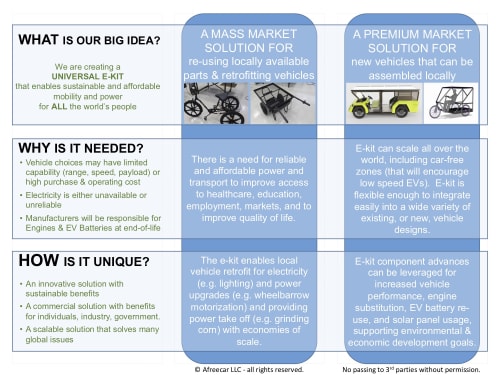 Mobility and power enable improved quality of life and economic development but current rural vehicle and power solutions in the developing world have either very limited utility or are too expensive to be broadly deployed.