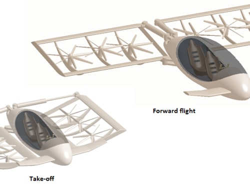With VAriable GEometry VTOL aircraft –VAGEV we propose an extremely compact VTOL configuration which produces thrust augmentation effects in vertical flight to reduce the size and the weight of the energy source. VAGEV can be the launch pad for a VTOL system able to operate safely near vertical obstacles, within urban environments, forests or mountains.