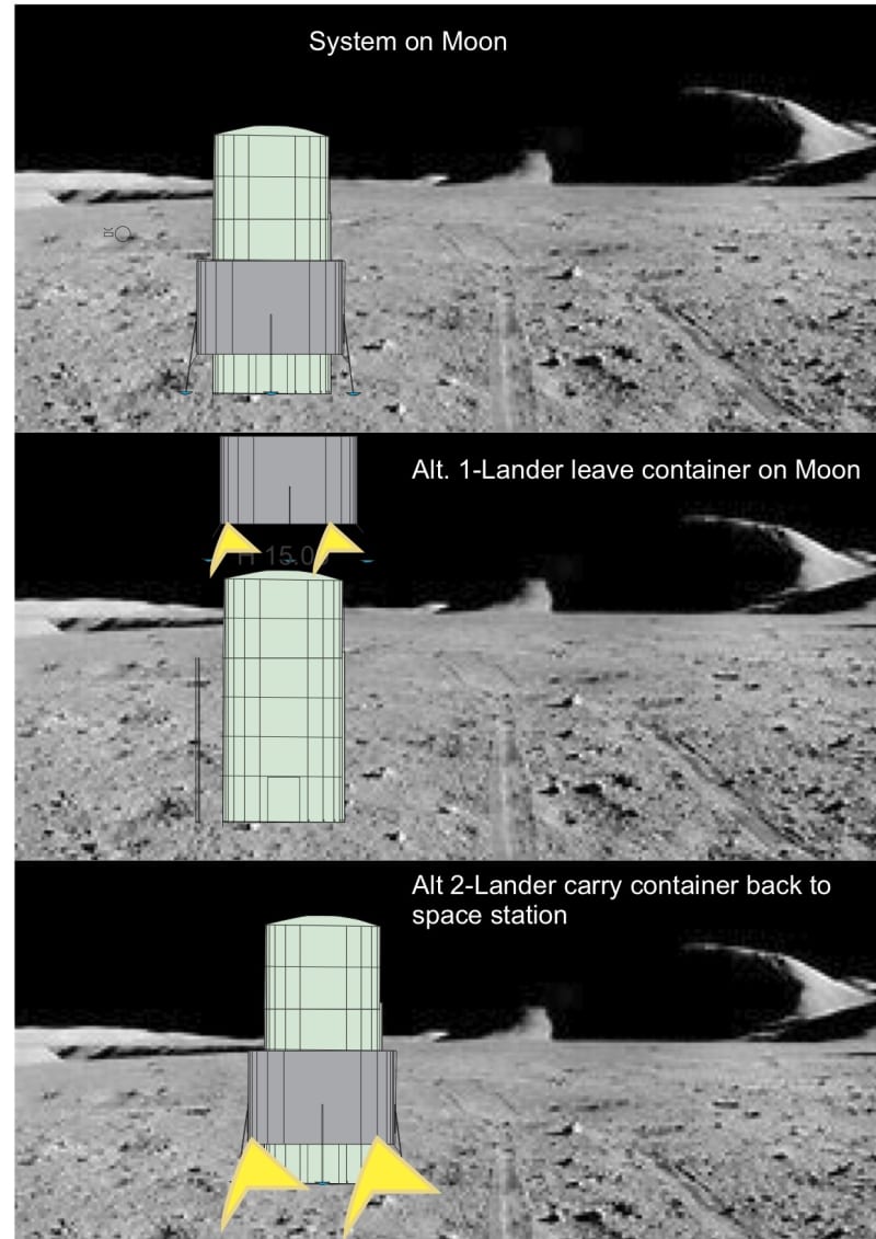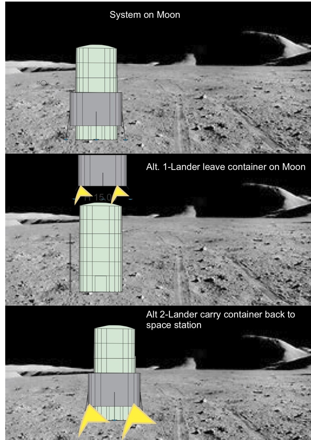 The system would transfer entire containers between spacecraft in space or between space and ground stations on Earth, the Moon, Mars or asteroids in a minimum time and risk free conditions, for cargo, crew even entire habitats.