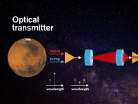 Communication in space is becoming increasingly critical, be it between satellites, from satellites to ground or even to/from the Moon or Mars. Current approaches use radio waves that spread quickly resulting in very small capacity: The data rate from the Mars orbiter is a few kbit/s, which is lower than the first-generation home modems decades ago. Therefore, the space engineering community is considering a transition to using laser beams instead, since they do spread much less than radio waves. The maximum reach and data rate are limited by the available transmitter power, the amount of wave spread and by the sensitivity of the receiver, defined as the needed minimum received power to recover the information being sent. The latter is fundamentally limited by unavoidable so-called “vacuum noise,” while the former two are limited by engineering constraints (power and size of the hardware).