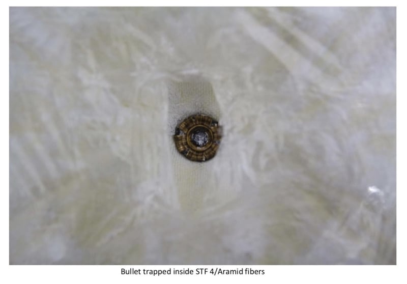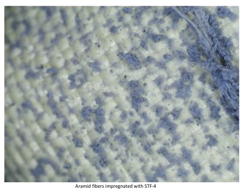 The proposed solution seems to have overcome these two problems. The Non-Newtonian fluid concept, also called Shear Thickening Fluid (STF), was also employed at part of this solution. However, materials such as calcium carbonate, nanosilicas and ethanol were combined to create a fine fluidic solution easy to impregnate aramid fibers from bullet proof vests. The trick was to find the correct combination and disperse it between fiber layers and among fibers by a two-step procedure, first place the fibers in a sonic bath with STF followed by an airbrushing process. This technique led to an increase into inter-yarn friction and the projectile’s deformation. This strategy provided the venues to an increase on damaged layers, but at same time, the trauma cavity volume was reduced, which is a positive point.