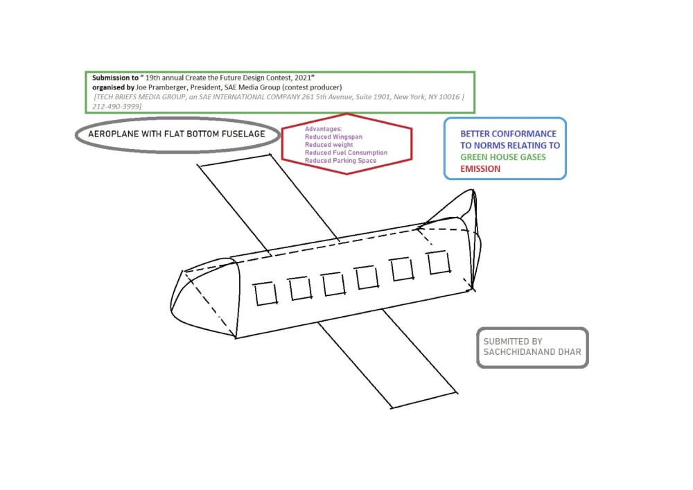 SUGGESTION: It is suggested that the BOTTOM SURFACE OF FUSELAGE BE MADE FLAT, so it can generate lifting force for keeping the aircraft afloat in air.