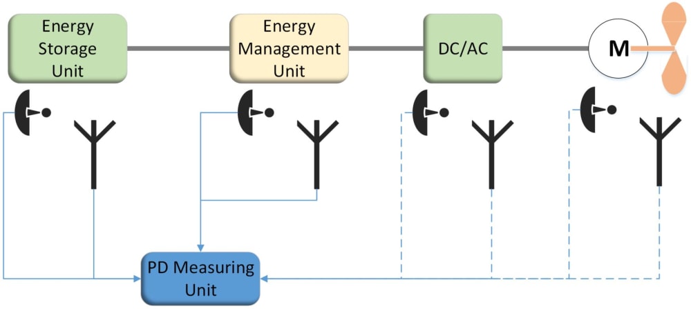 The device, will be placed close to a critical component of the powertrain that is most possible to produce PDs. Such a device can also be modular, which means that multiple components of the electrical powertrain can be monitored simultaneously.