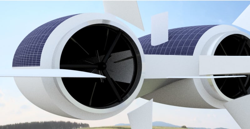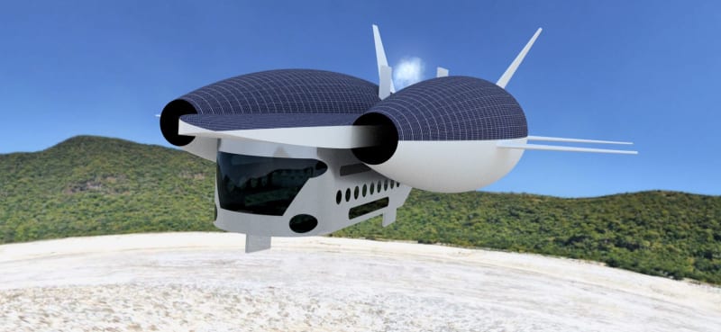 The design is focused on making the Airship as efficient as possible. Since it is fully electric, the need of electric power is immense. To meet the demands of power, the upper-surface of the airship is fitted with light weight solar cells and multiple Ram Air Turbine systems. The propulsion system uses an innovative split-contra rotating ducted propeller which generates more thrust than the conventional propellers. Its VTOL capabilities allows it to dock anywhere and makes transit faster and direct.