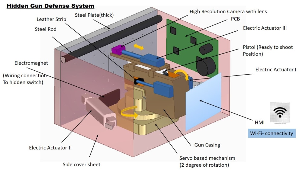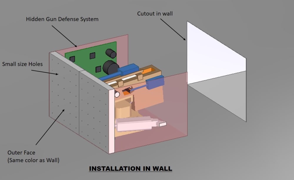This concept is titled “HIDDEN GUN DEFENSE SYSTEM.”