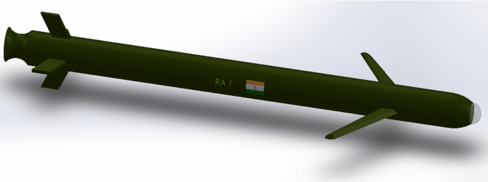 Rudhra-Astra is designed with 3 parts: RPG missile, RPG missile launcher and Smart Head Mount Device. When a soldier aims and triggers the RPG missile, the launcher ejects the missile. The uniqueness of Rudhra-Astra is tracking and controlling of the missile. It has a camera for target imaging. The soldier can track and control the missile through a Smart Head Mount Device (SHMD) using radio frequency signal. The SMHD has an active-matrix liquid crystal image display and command line of sight guidance system to track and guide the missile. The RF control signal from the soldier guides the missile by changing the yaw and pitch control to hit the target accurately.