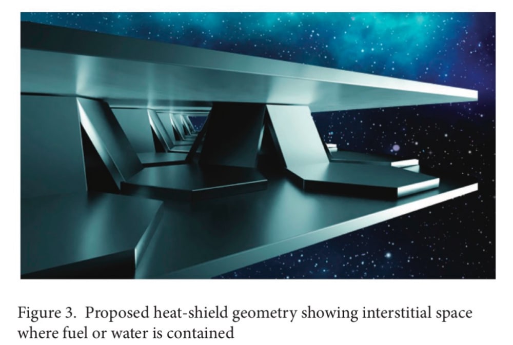 We propose an alternative heatshield design for SpaceX’s Starship. It solves the problem of how to efficiently make a heatshield core material made of steel alloy that can be formed into double asymmetric curvatures without distortion and which has an interstitial space to hold either fuel or water in between the sandwich layers.