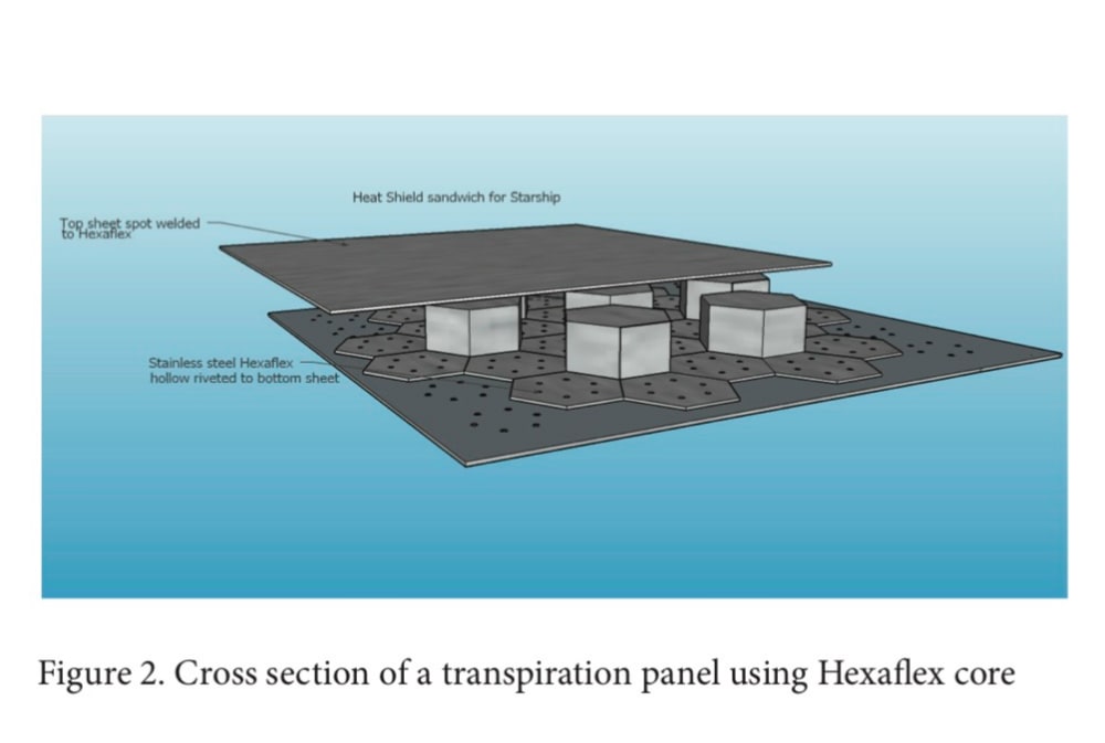 “You just need, essentially, [a stainless-steel sandwich]. You flow either fuel or water in between the sandwich layer, and then you have [very tiny] perforations on the outside and you essentially bleed water [or fuel] through them … to cool the windward side of the rocket.” – SpaceX CEO Elon Musk.