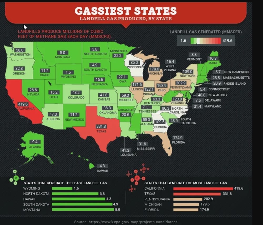 Set up pressurized storage tanks with filtration systems at these sites. Then modify the fuel sources on transportation vehicles/machines (like CNG conversion options currently available) to accommodate the gasses. This is already being done on an industrial engine level for spark ignited onsite generators. By doing so we can use these gases as a renewable resource instead of releasing into the environment and the air we breath.