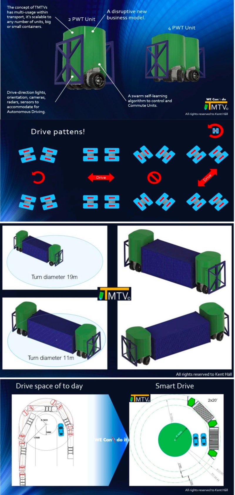 - A single TMTV can drive like a "Segway" when not connected to an ISO-Container or another TMTV.