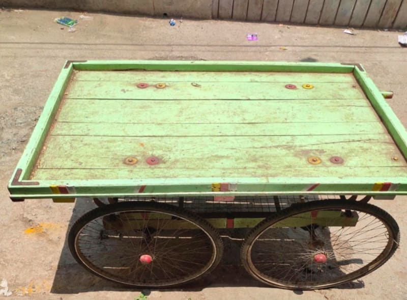 This is vegetable thela. I want to automate it by putting in a motor or belt drive to run it. Make and arrangement for braking system and give handle. I need to do analysis of this. Taking load, friction, dimensions into consideration. So, I want to make it automated.