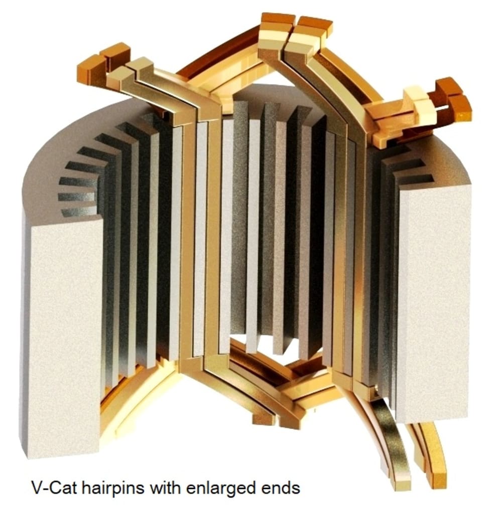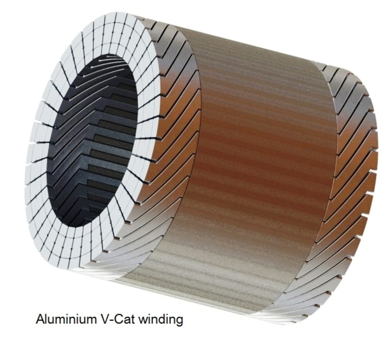 A recent development called Variable Conductor Area Technology (V-Cat) allows copper to be replaced by Aluminum in EV motors without any loss of efficiency saving considerable cost. V-Cat is a form of hairpin winding in which the end-windings and slot conductors are formed in aluminum using conventional die casting. The end-windings forming part of this conductor are much larger in cross section than the slot conductors. The slot conductors remain the same size as the copper they replace. This allows the overall combined DC and AC conductivity of the windings to equal or lower the original copper losses and so do not negatively affect the performance of the motor or its efficiency.
