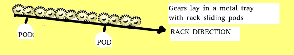 The system will have very inexpensive gear to rack engagement for the pod and for speed gear to gear engagement along the track for initial slow speed uptake - max speed in the middle and slowdown at the end.