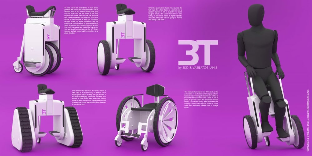 The 3T represents a product that is desirable to be used by people of many different abilities due to its ability to take on different conditions and mimic the general condition of a regular persons height and maneuverability. Currently sub optimal products are even used by people with full functionality at things like trade shows which are too large to walk around all day so this product appeals to people of many abilities.