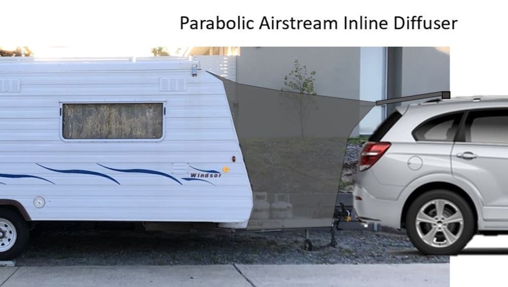 The idea for a Parabolic Airstream Inline Diffuser (P.A.I.D.) came into existence for the purpose of making it easier to tow my caravan by reducing the significantly restrictive aerodynamic properties of my caravan.