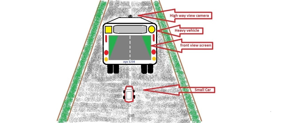 To avoid such accidents we propose a novel idea with available resources such as a good vision camera, recorder and LCD screen. This concept would be implemented by fixing a vision camera on the front side at the top of a heavy vehicle. This might help the car drivers to view the traffic conditions ahead of the heavy truck which can be seen on the LCD screen which is fitted at the back side of the heavy vehicle. With this arrangement drivers of other smaller vehicles and cars who wanted to overtake the heavy truck and vehicles can easily view the other traffic in front of the truck before overtaking. Infrared camera may also be used to see the traffic ahead of the heavy vehicle in the nighttime. Recording facility inside truck may record all activities on the road such as which vehicle is overtaking, accidents and other vehicles on the road. Such a simple arrangement could be useful to save many lives due to accidents on roads and highways occurring every day and everywhere. Illustration might clarify the concept.
