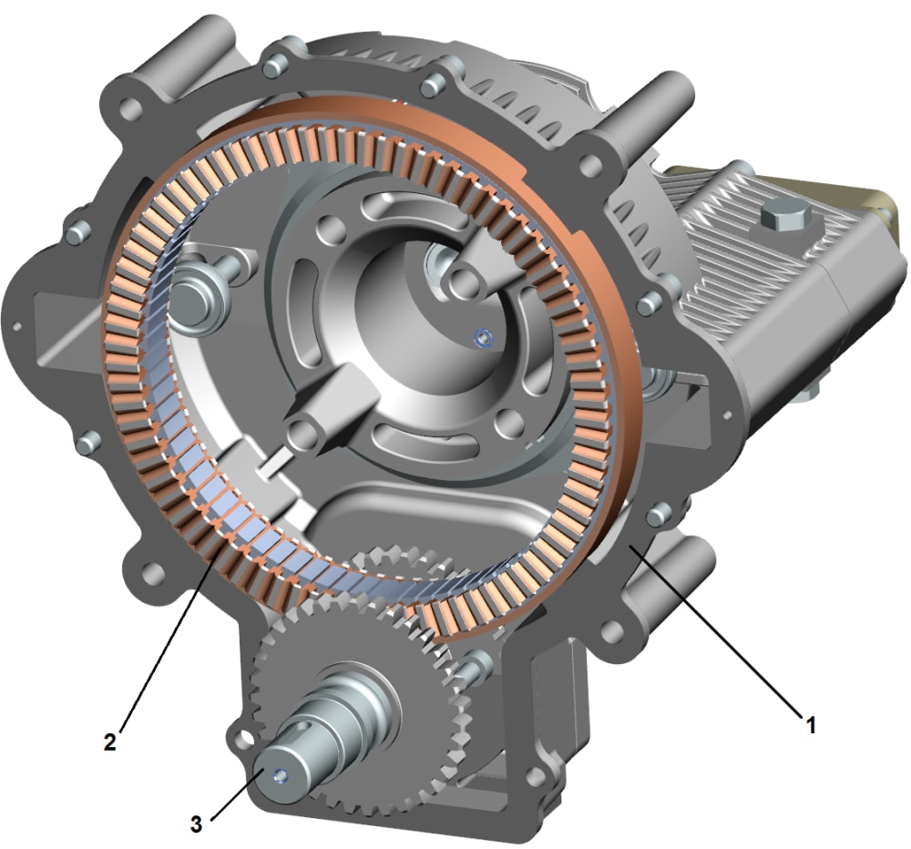 The rotor of the electrical machine (4) is attached to the tubular cam (5) of the CoAxial Engine and the stator (2) is installed in the engine casing (1). In this way, if the CoAxial engine is intended for an Electrical Hybrid Vehicle, then the vehicles hybridization is realized in a most easy and natural way. In this way the integrated electrical machine is output device if it works as a generator. Alternatively, the integrated electrical machine can be used also as starting motor for the CoAxial engine and thus no need of extra one. Furthermore, the above-mentioned integration provides cost savings since the electrical machine do not need its own casing and bearing – the CoAxial engine just shelters the electrical machine. Based on the suggested integration, efficiency improvement will be achieved because less friction components will be utilized.