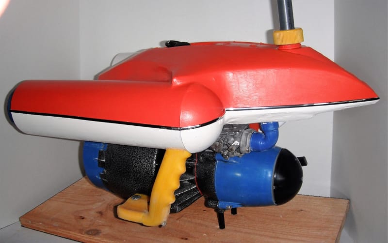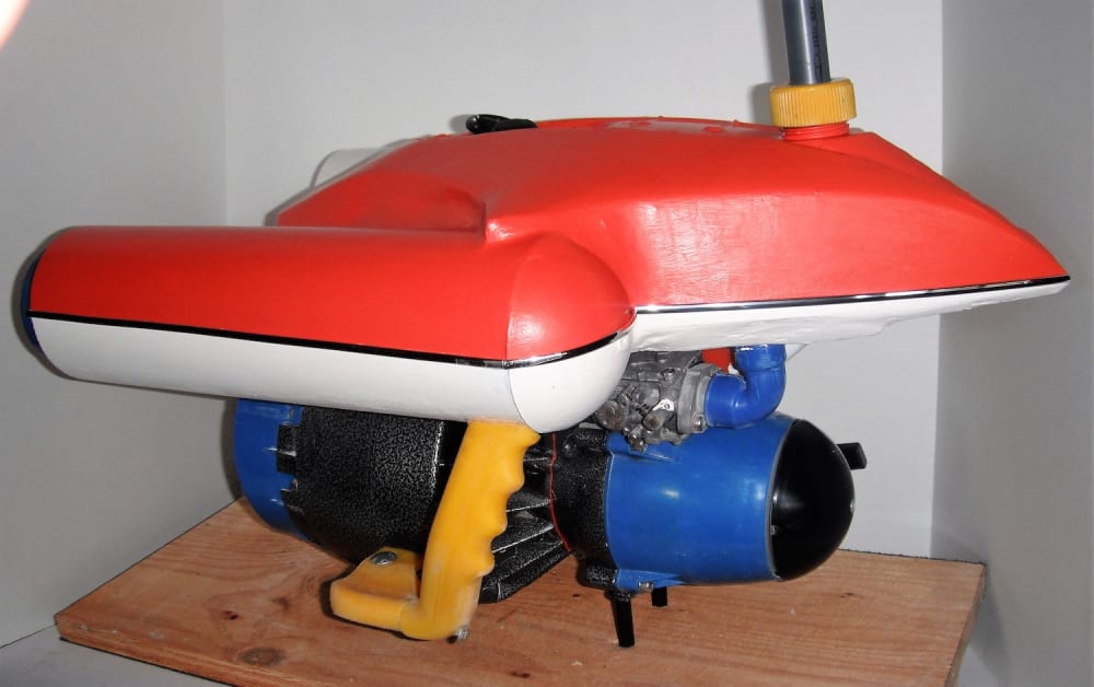 What I’m about to describe is like a gold mine that has caved in. It’s actually my original patented Aquascooter, a 15 lb miniature gas powered PWC that can pull you through the water in a swimming position, like James Bond, at a surprising rate of speed. It has the power to keep up with Dolphins. For 30+ years it has been the only gas powered product of its kind. Due to recent EPA regulations, you might say, they sealed the mine from further access. I was not satisfied with leaving the gold lie untouchable, I set to work to solve the EPA issues, and get back to the gold. After researching and making many prototypes I have solved all the problems to achieve the next generation, just patented on 3/31/20, a 17 lb miniature PWC Seatrec.