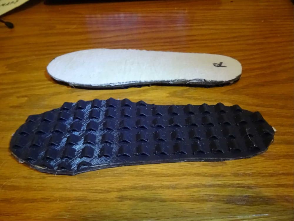 In order to achieve the necessary shock absorbing and performance results, gels or foam must be laminated to a secondary substrate to reduce compression. Typically, this has again been another layer of foam or gel. However to reduce compression and improve performance the secondary surface should be constructed so as to have shock absorbing features as well as a flexible base for the top layer of foam or gel.