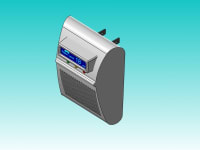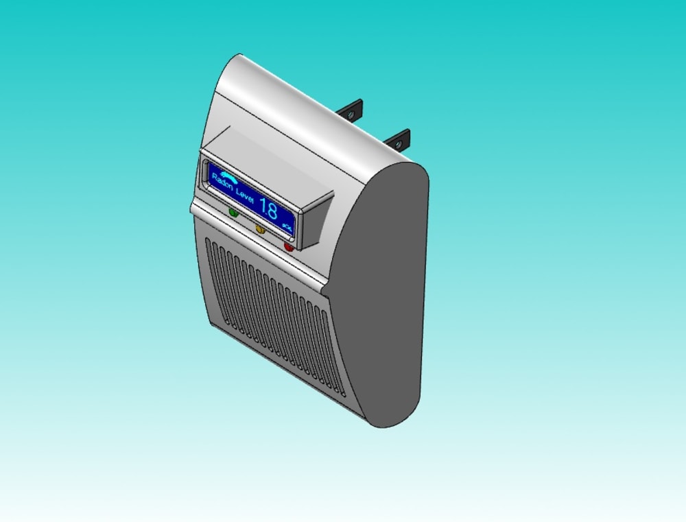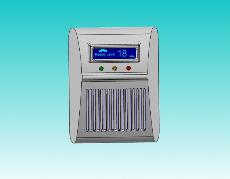 The new design could be made with a conventional Geiger tube; or, be of the newer laser spectrographic design; which, can also, test & collect data of other Air Pollutants. The several unique features of the new design make it actually practical for businesses; government buildings, and home dwellers to practically use everyday; much like an existing smoke alarm. The previous designs sat on counters; relied on batteries; & did not have audio alarms, or user readouts; all of which make them impractical to use; unlike this new wall mounted design, that, plugs into the wall socket nearest the floor; for maximum Radon Detection, and does not require tedious battery changes, nor, gobble up counterspace if available at all, at some locations.