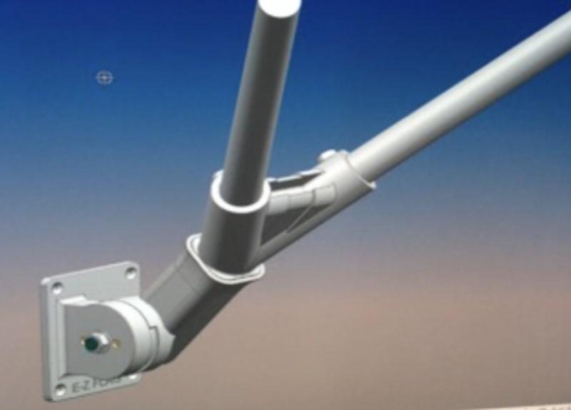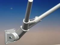 The bracket design recommends using a nickel alloy metal and using standard metal moulding practices to create the two main components of the bracket. Other small internal metal components plus spring steel leafs comprise the ratcheting mechanism. The flag pole adapters are injection moulded PLA or similar plastic. A nylon gasket provides for moisture protection. A standard bolt, spring washer, nut and washer comprise the rotational mechanism.