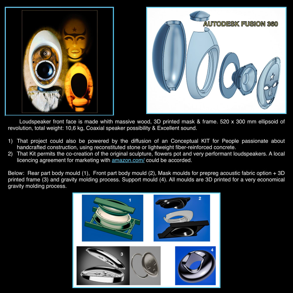 Loudspeakers fabrication: Limited edition in reconstituted stone and mass production in molded wood.