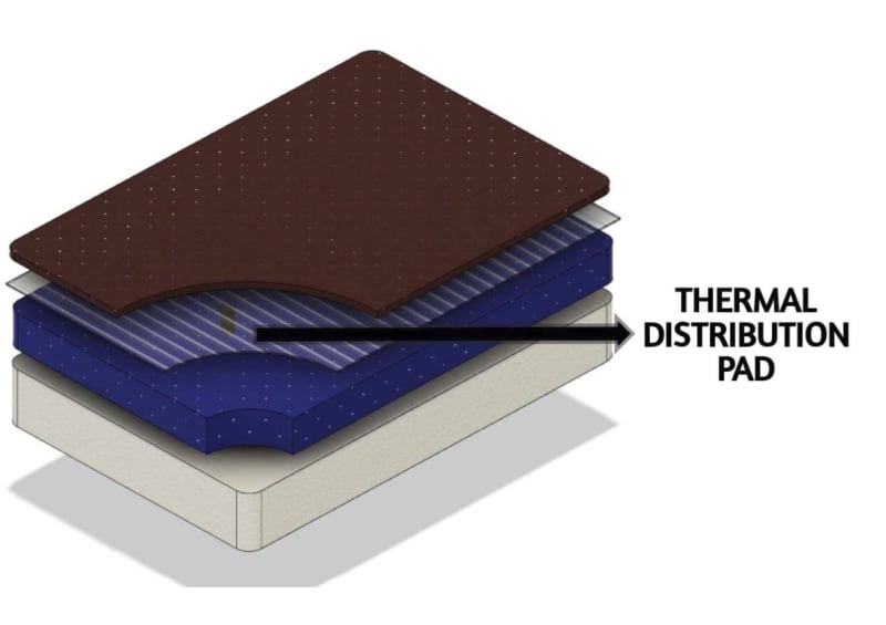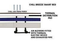 In this system, the blower and the thermal device are connected to an exhaust pipe that carries the cold or warm air to the thermal padding which is placed in between the cushions and the topmost layer of the bed. The thermal padding and the topmost layer of the bed consist of pores that enable free circulation of the air generated and heat produced from our bodies.