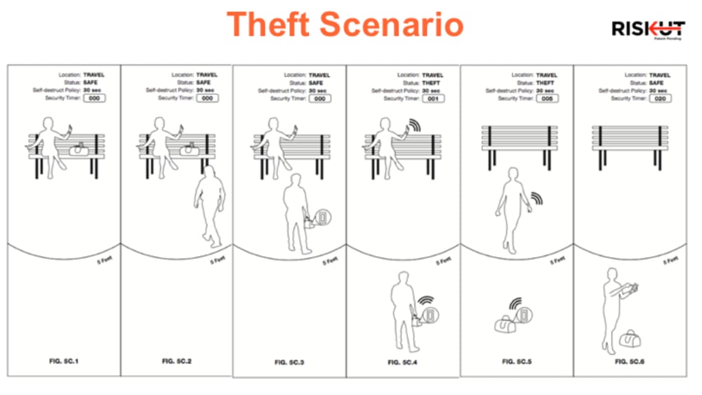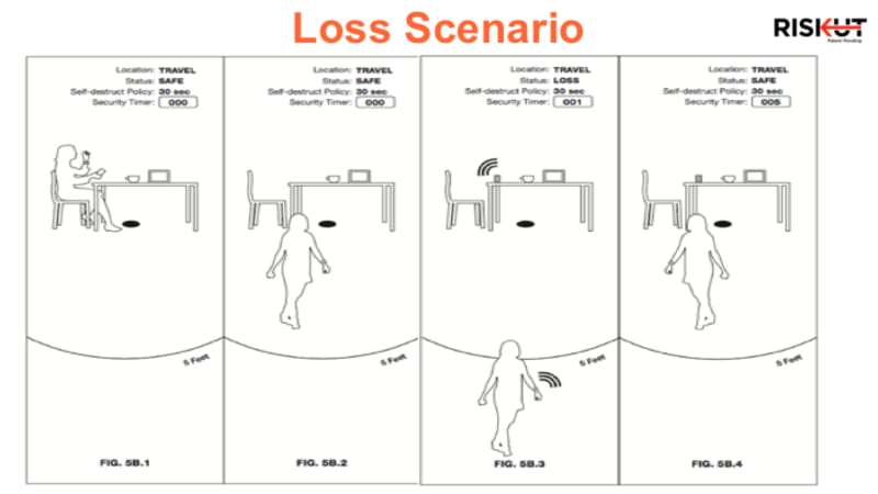 If the mobile device is taken a pre-set distance away from the owner, an alarm – which cannot be silenced – will sound and the device will lock. If the alarm is not stopped by the identified owner within a pre-set window of time, the content will be rendered inaccessible by anyone except the owner. Riskut* can also alert users if they are about to forget their device – whether at home, office or in a public place.