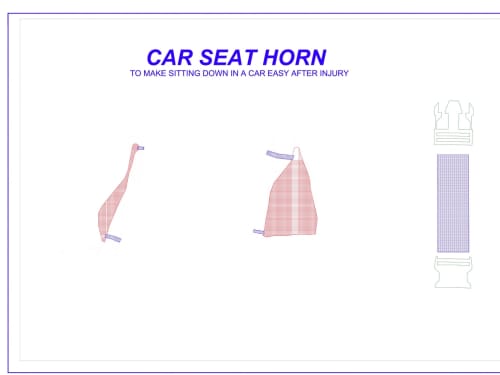 This is a concept for a non-stick car seat "horn" to help get in and out of a car. After a lengthy hospital stay, my mobility was impaired. When I got into my car or any car, my clothes would stick to the seat fabric. I didn't have enough energy to twist around and get into place.