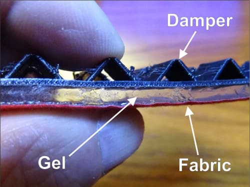 Current shock absorbing technology uses either a foam or gel material. While both are soft and flexible, unless used in a thick manner, they will under time and pressure flatten out resulting in a hard surface. Thickness is an important feature in that the thinner the better for most applications.