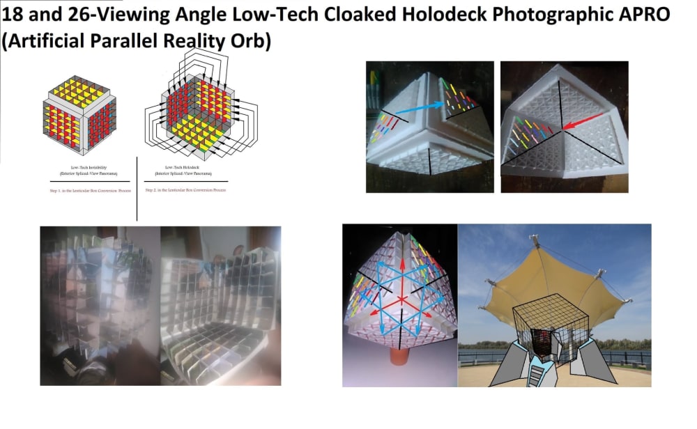 As the name states, it is photographic in nature, but is also the low-tech counterpart to my high-tech ideas in the geometry of invisibility and holodecks, as they would pertain to light-field optics, or my modified version of a light-field lens array.