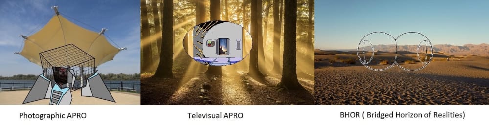 In that case, there would be a high-tech Televisual APRO, which would work with actual optics and electronics to produce an invisible shell surround an interior holodeck of the outer background environment of any corresponding Televisual APRO, similar in nature to the design of its counterpart. Twin dual-corresponding Televisual APROs.