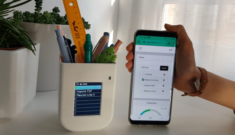 There is an increasing number of home devices connected to the Internet to make our lives more comfortable, from televisions to refrigerators, which is known as IoT. Considering this I have developed a pencil holder with an interactive to-do list, which integrates a screen and a gesture sensor.