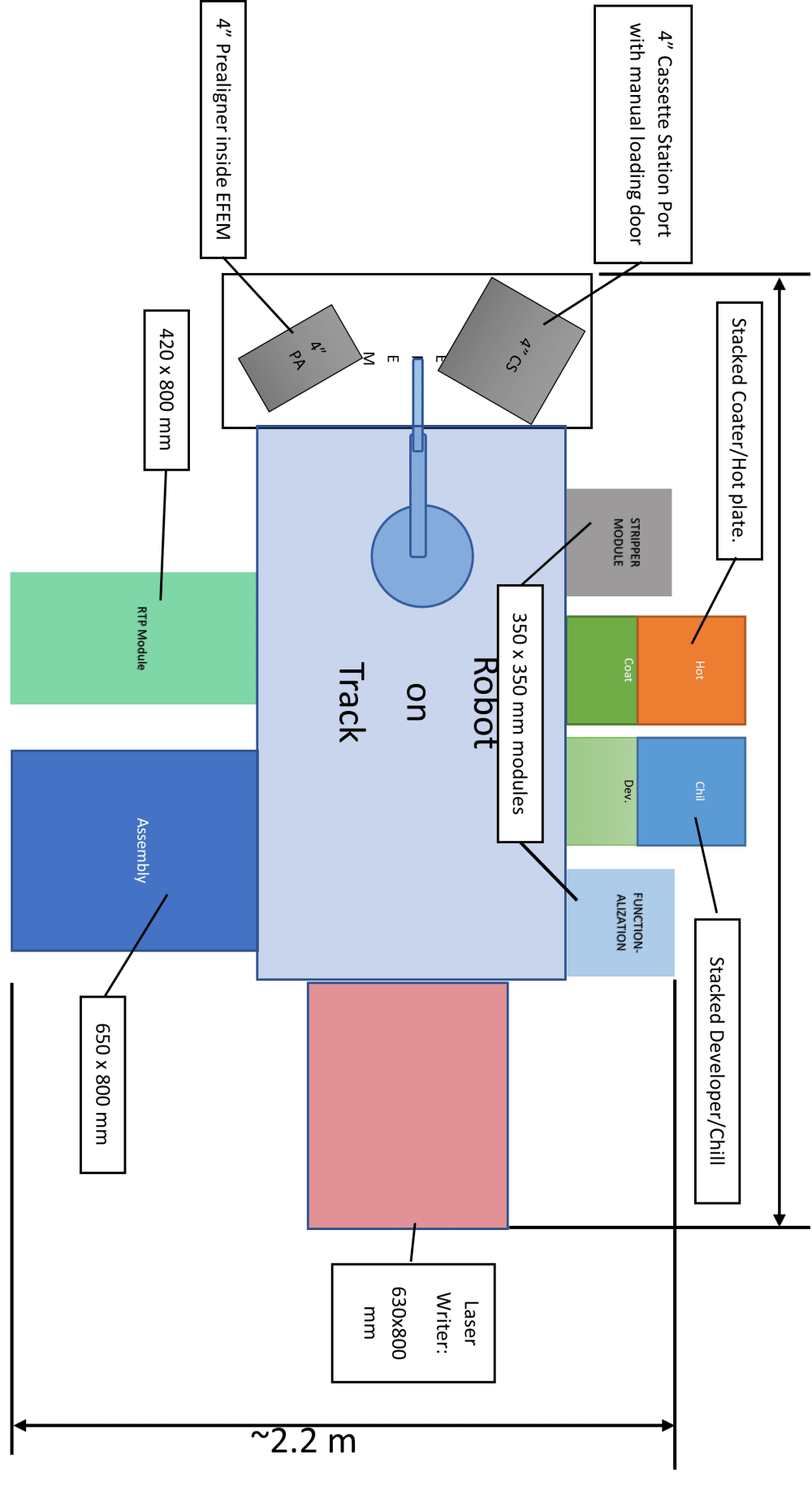 Designed for research and development, suitable for customers in industry, government, and academia. The Fab-In-A-Tool is fully automated equipment that takes a CAD input and prints the pattern directly on the substrates. The equipment has an integrated that includes a robot for handling substrates, lithography module with coater, developer, stripper, and laser writer for patterning. This equipment can print feature size is down to 800 nm, deliver multi-layer alignment down to 2µ between layers. The tool is capable of printing a single layer in under 40 minutes and occupies approximately 6 square meters of space. The technology has been used to print conductors, semiconductors, dielectrics, and CNTs. The tool starts at a price of $1.5 million each and can be housed in a garage to begin producing integrated circuits. The key benefits are: