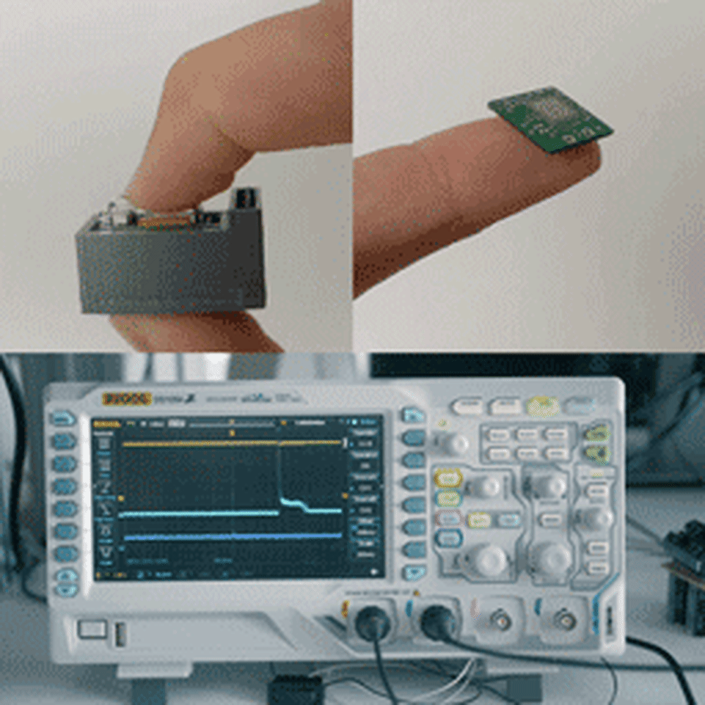 Our Energy harvesting IoT-device (Fig.1) works with as low as 100µJoules energy (single press of a switch generates 200µJoules). It is challenging to detect/sense, process, and transmit with this energy. The transmission range can be 100meters at 200kbps bitrate and 10meters at 1Mbps using our proprietary protocol. The operating frequency is tunable up to 1GHz. The weight of the device excluding the harvester is just a few grams. The size of our system is 10mmX10mm and costs less than $10 US.