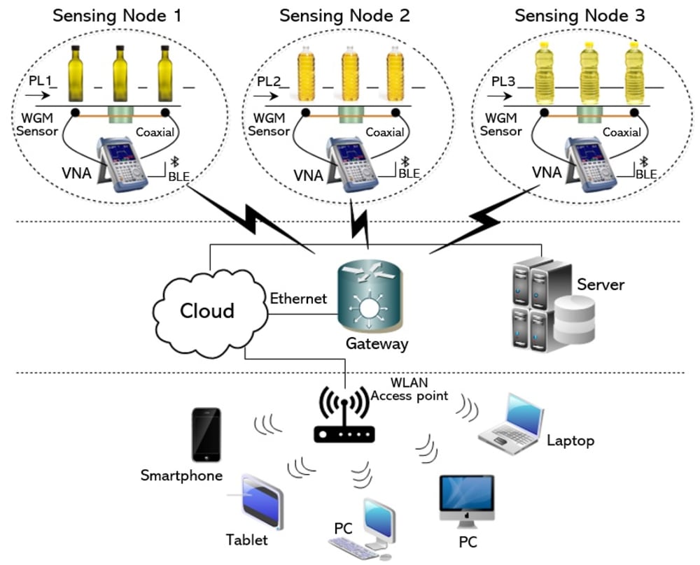 The microwave sensor enjoys many features of compact size, low power consumption, affordable cost, and high sensitivity, thereby making it attractive not only for development as an independent quality detection platform in the oil processing industry but also as a complete autonomous system based on IoT (Illustration 3) for online, rapid, non-invasive, and cost-efficient testing that substantially reduce the product processing losses, labour shifts, operational costs, and effectively improve the product quality and supply-chain. A portable version could be developed to rapidly detect any fraudulent oil brands and/or producers.