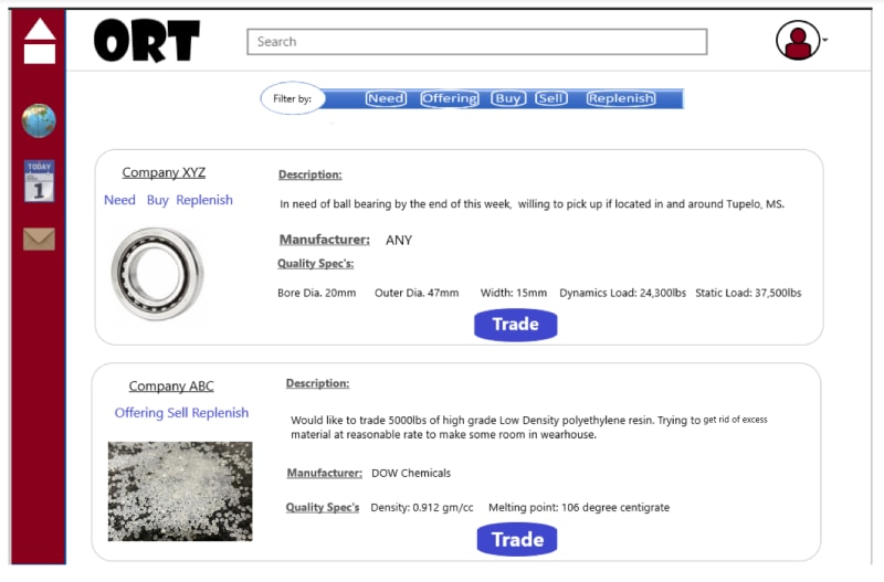 The biggest challenge in any organization is inventory management. Either there is too much inventory on hand or they are in need of it. Organization Resource Trading (ORT) is a concept that will help the organizations that are short on inventory/material to trade with the organizations that have excess/inessential material on hand. The trade can be either sell, rent, lease, or replenish.